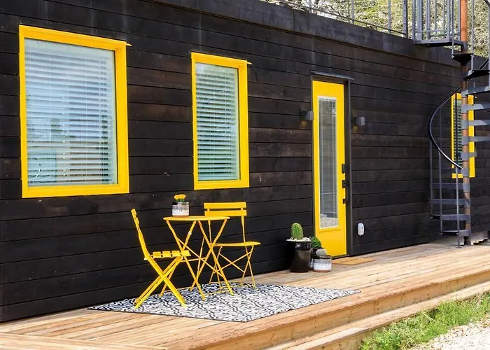 Der New The Yellow Beacon-Luxury Shipping Container bietet seinen Gästen ein einzigartiges Übernachtungserlebnis inmitten der charmanten Umgebung von Fredericksburg. Diese außergewöhnliche Unterkunft kombiniert modernes Design mit einem unverwechselbaren Konzept, das die Gäste in seinen Bann zieht. Ideal für Reisende, die das Besondere suchen, verspricht dieses Hotel unvergessliche Momente.